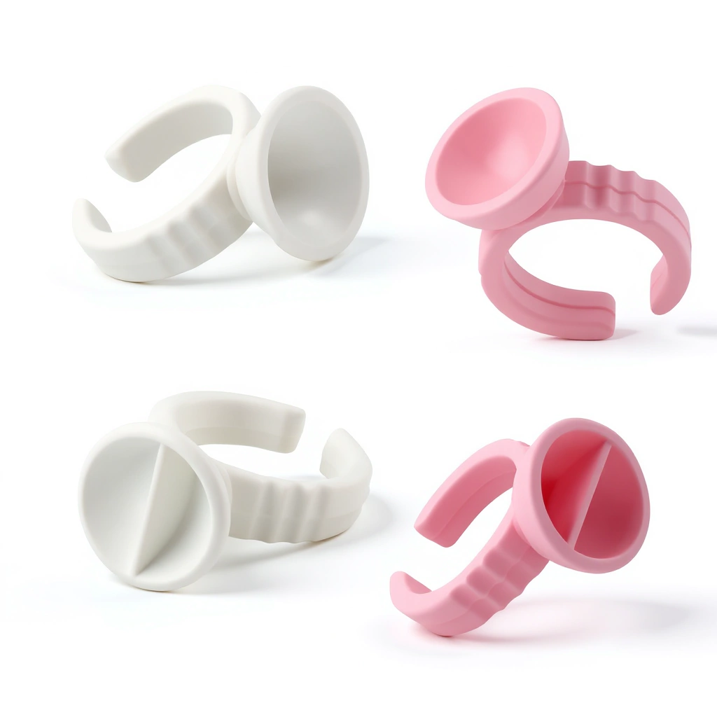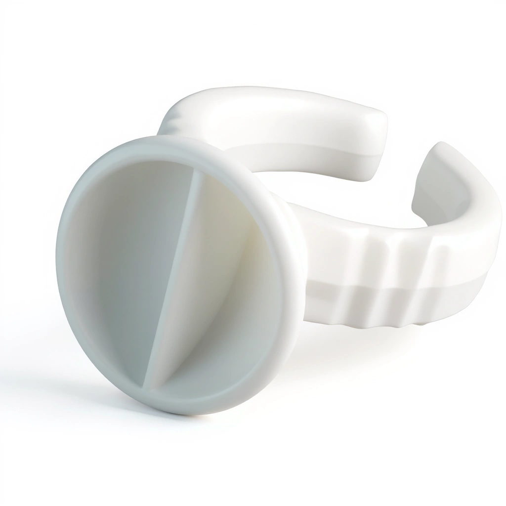 Anel batoque com cavidade rasa com e sem divisão, ideal para pequenas quantidades de cola ou pigmento. Minimiza o desperdício e facilita a limpeza.
