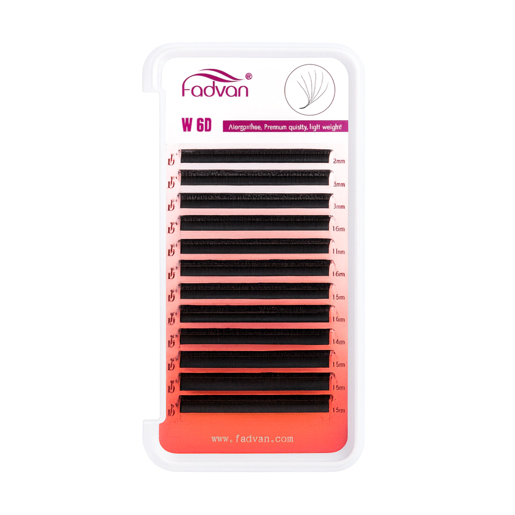 Cílios no formato W com volume 6D (seis fios ultrafinos unidos na base), desenvolvidos para criar um olhar intenso, encorpado e extremamente uniforme. A base em formato W amplia a área de fixação da cola, proporcionando maior estabilidade, durabilidade e alinhamento perfeito dos fios durante todo o uso.