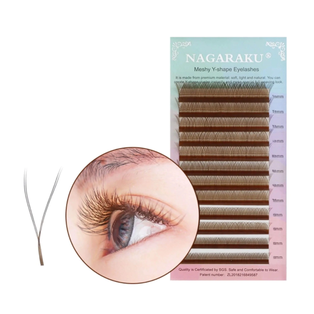 Cílios no formato YY na elegante cor marrom, perfeitos para criar volume discreto com aparência natural e coloração suave que harmoniza com diferentes tons de pele e cabelos. Seus fios duplos, levemente espaçados, proporcionam textura leve e sofisticada, ideal para clientes que desejam destaque sem perder a naturalidade.